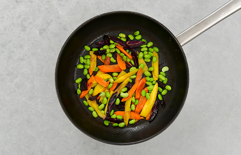 - 100 g směsi zeleniny v různém poměru (fazole edamame, karotka)