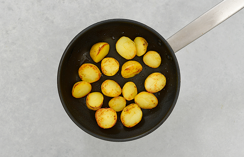 - Vložíme brambory a opékáme zprudka 1 minutu.